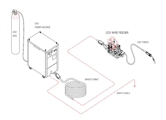상기 이산화탄소 용접시스템(Welding System)중 플럭스 와이어를 송급하는 장치인 와이어 피더(Wire feeder)는 1축 Wire feeder, 2축 Wire feeder, PUSH, PULL, PUSH-PULL, EXTENTION, 그리고 송급 구조에서 1롤 & 3롤 세라믹 롤러와 2롤 & 4롤 GEAR ROLLER 등이 있습니다.